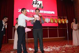 一輪熱舞過后,當(dāng)然是簡單而又隆重的頒獎禮。首先是頒出“2014年度優(yōu)秀經(jīng)銷商”,由馬瑞董事長頒發(fā)給新疆省庫爾勒經(jīng)銷商劉海波先生,感謝他為瑞馬壁掛爐終端市場所作的杰出貢獻(xiàn)!接著就是“2014年度最優(yōu)秀員工獎”,頒發(fā)給我們最可愛的馮興石員工。其實(shí)我們私下都喜歡稱他為“馮導(dǎo)”,特別地逗趣!也必須感謝他長年累月地出差在外,為我們維護(hù)經(jīng)銷商,配合經(jīng)銷商客戶的銷售工作!看到頒獎獎品居然還有iphone6,我的眼睛都發(fā)亮了!瑞馬公司真的太任性,太土豪了!