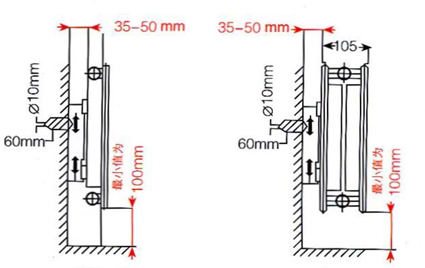 散熱器距墻體應(yīng)保持25-50mm的距離。